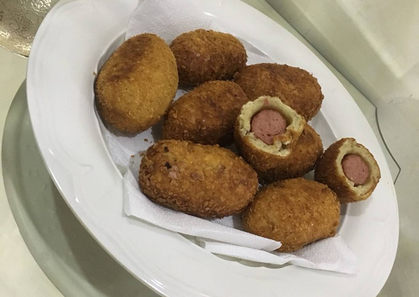 - Deflate batter and rub some oil on ur palms, then cover each half of sausage with it, coat with flour(add a pinch of salt and black pepper in it), then dip inside milk and lastly with bread crumbs of golden morn or corn flakes. Then fry until golden brown.