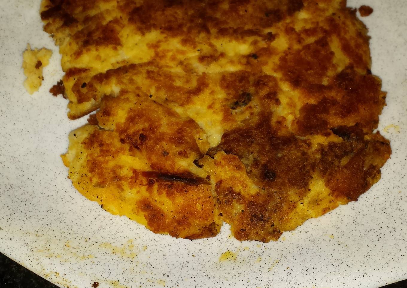 - Mix the mashed potatoes with the onion, beaten eggs, salt and pepper and chorizo