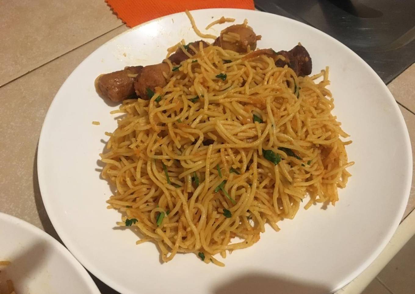 Spaghetti and sausages(spicy)